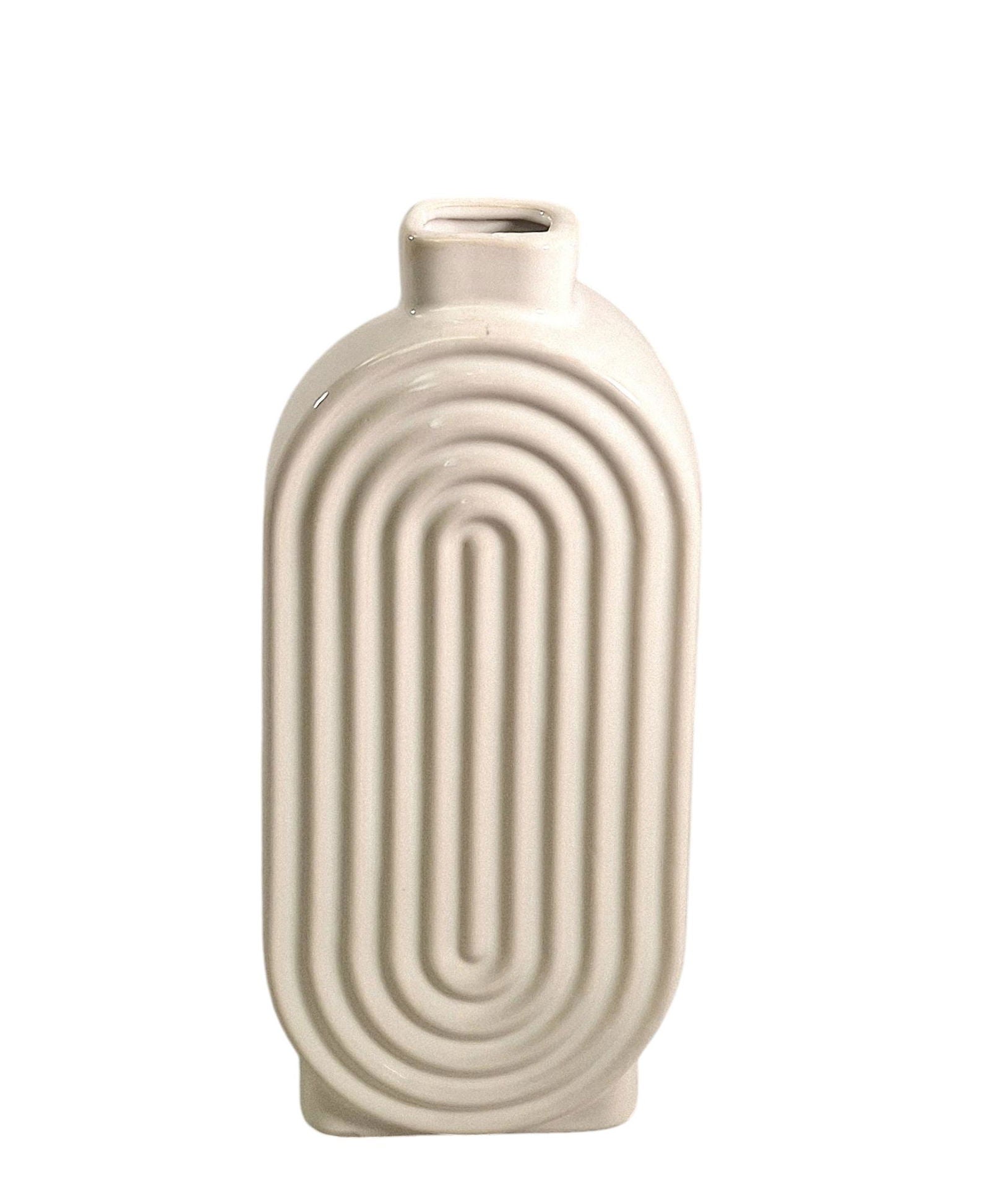 White Ribbed Oval Vase